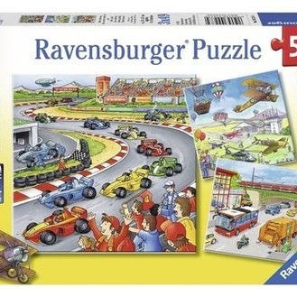 ⢠Ravensburger Puzzle 3Ă49 brikker (5+) â biler/racerbane