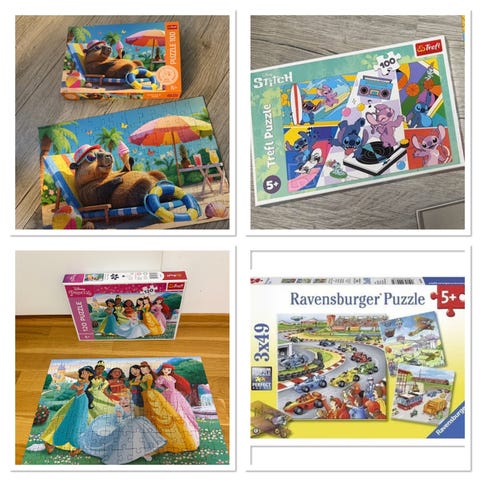 Alle puslespill er komplette, i veldig god stand, pent brukt.
