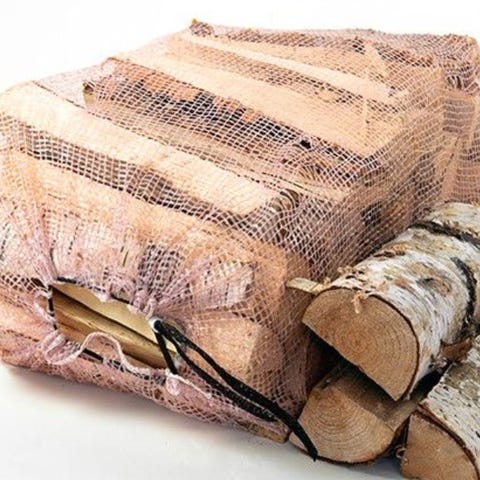 Tørr bjørkeved i 60 liter sekk.