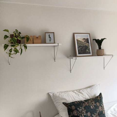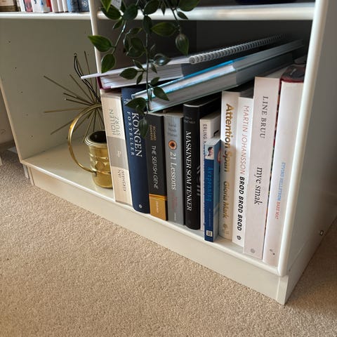 Hylleknektene er helt fine, hylleplate har noen bruksmerker.