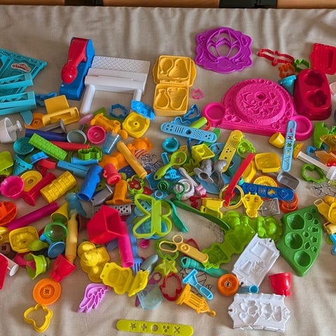 Helt nye og uåpnet pakke med Play Doh (20 bokser i ulike farger) + utstyr til Play Doh selges.