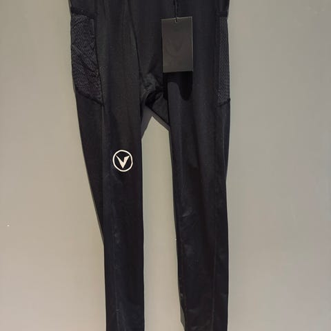 H&M løping tights for menn i størrelse S. Tightsen har et mønstret design med mørke farger og er laget for bruk ved løping.