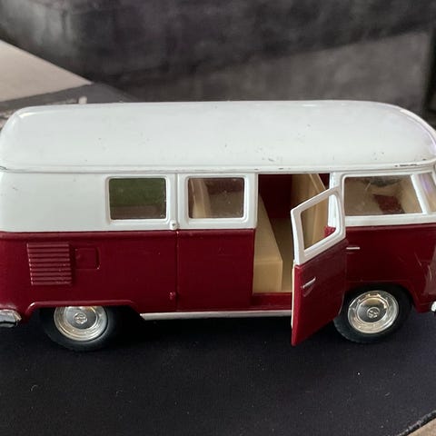 Maisto, VW Bus, Volkswagen Samba, T1, modellbil, samleobjekt, bilmodell, 1:40, rød hvit, die-cast, klassisk bil