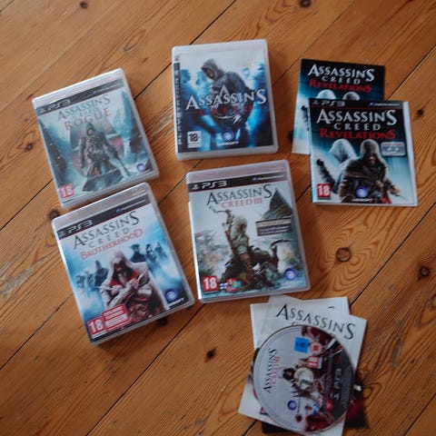 Selger komplett Assassin’s Creed-samling til PS3. Perfekt for fans av serien eller samlere.