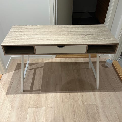 Astrup skrivebord selges, ca 1 år gammelt, så å si ikke brukt. Stolen på bildet følger ikke med. Selges grunnet flytting.