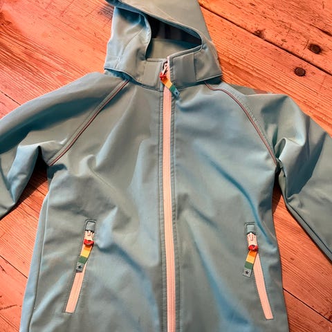 Villervalla barnejakke i størrelse 122 og fargen grå. Jakken har hette og lange ermer med elastiske mansjetter. Den er laget for barn og egner seg til utendørs bruk.