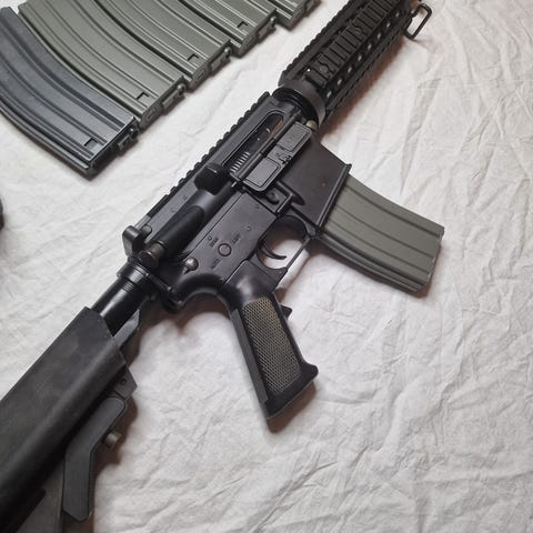 En godt brukt rifle som har sett masse action. Min absolutt mest brukte rifle, og en fan favoritt av de fleste. Rifla internt er kjempe god, batteriet holder lenge og er lett å håndtere for nybegynnere samtidig som den konkurrerer sterkt mot langt dyrere rifler.