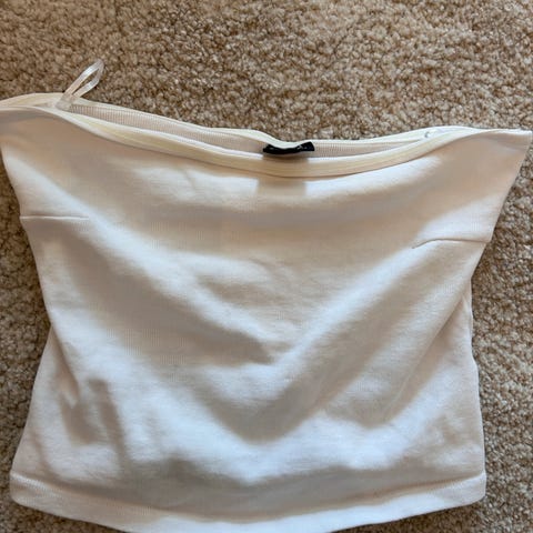 Gina Tricot stroppløs topp i størrelse M. Toppen er hvit. Designet for kvinner.