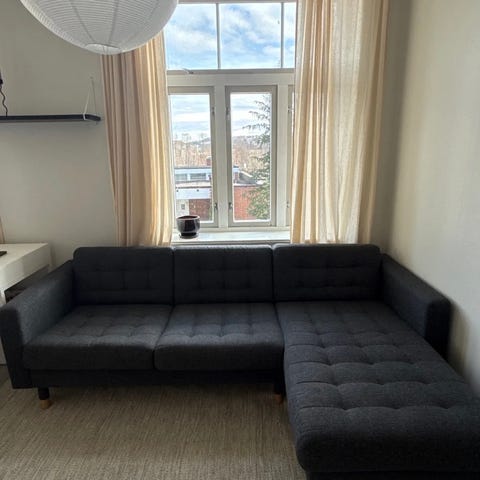 Landskrona sofa 4-seters med sjeselong og 2 Landskrona puff selges grunnet flytting.