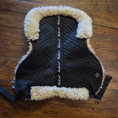 Christ Lammefelle konturformet gjordbeskytter i svart med ekte sauepels. 65cm lengde. Helt ren pels og nærmest ubrukt