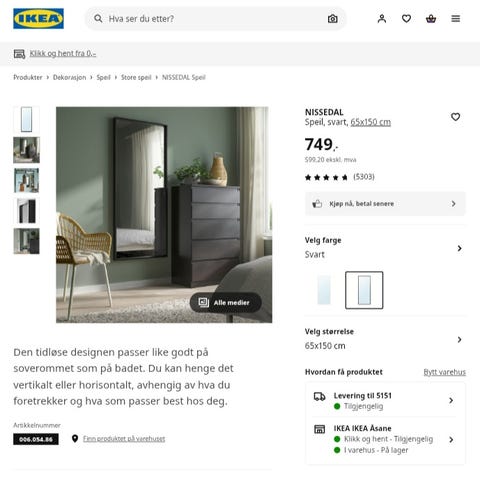 2 Svarte Ikea Nissedal speil