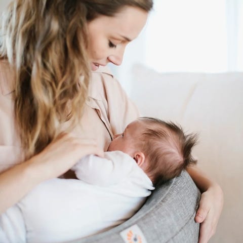 Selger ammepute fra Ergobaby i modellen Natural Curve med stropp. Kan også brukes som gravidpute og til «Tummy Time» for baby. God for å unngå krummet rygg under amming.