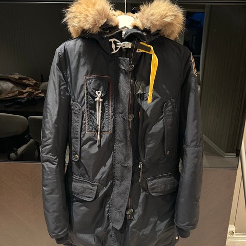 Den har bruksmerker, men god og varm jakke, med mye bruk igjen.