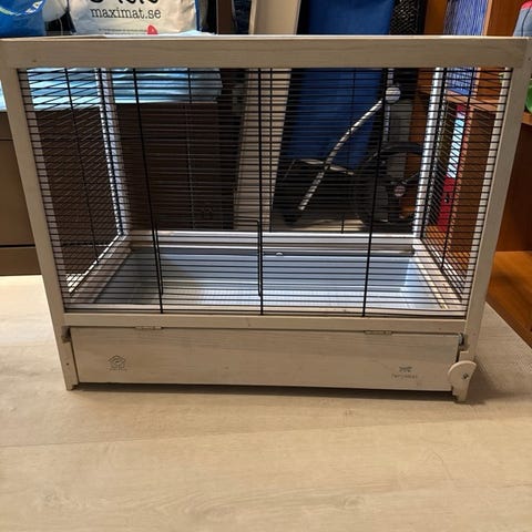 Hamsterbur med utstyr.