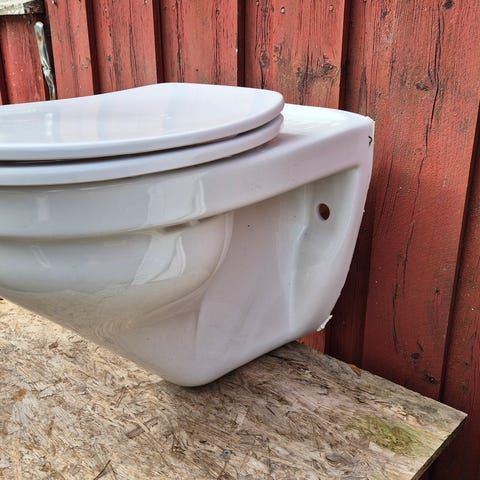 Porsgrunn toalettskål for innbygging. Vegghengt. Har kun vært montert. Ble bare byttet. Og toalett sete med demping.