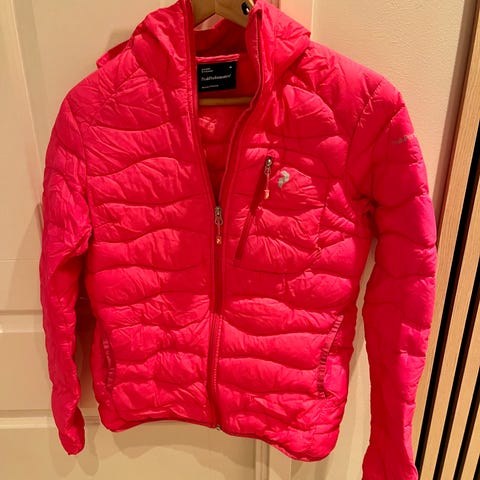 Peak Performance tynn mellomlags dunjakke i størrelse M. Jakken er turkis/grønn. Har renset garderobe og selger unna jakker som ikke blir brukt, flere annonser på finn. Denne er pent brukt.