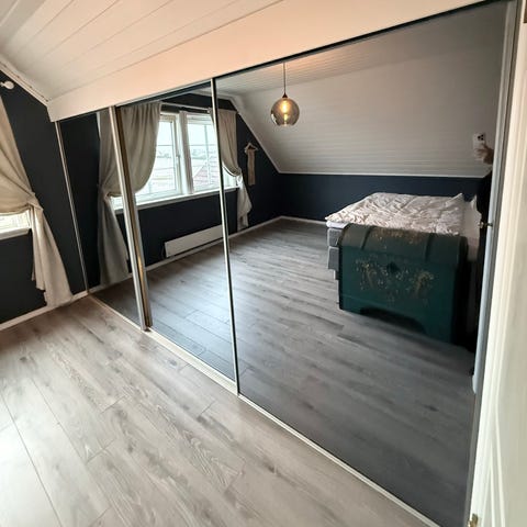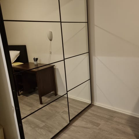 Vi skal pussende soverommet, ønsker derfor å selge dette garderobeskapet. Stort klesskap som rommer god plass. Svart med speilglass.