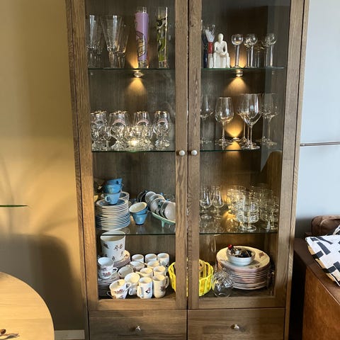 Vitrineskap fra Ikea. Kjøpt for litt over 1 år siden, fremstår som nytt. Mål står på bilde.
