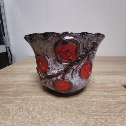 Retro Hvite blomsterpotter med Blomstermotiv i keramikk