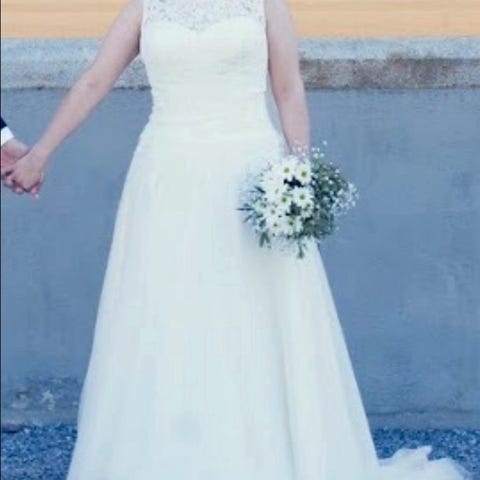 Flott brudekjole i str 42 og ei lekker kappe som kan brukes til selges for HBO kr 999+frakt.