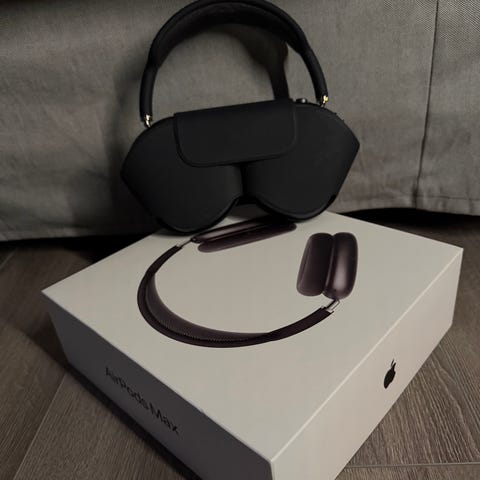 Selger et pent brukt par med AirPods Max. De er ca. 3 år gamle men brukt svært lite. Alt følger med, følger også med ekstra etui som beskytter mye bedre. Kjøpt nye på Elkjøp for 7000,-.