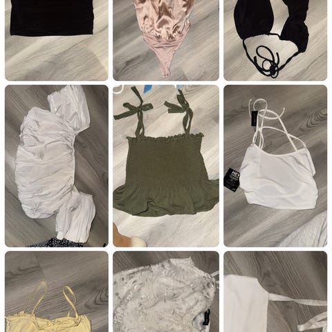 Selger mange fine topper og tskjorter til jente/dame samlet. De er i størrelse XS-S, og fremstår som nye. Kan sendes dersom kjøper betaler frakt!