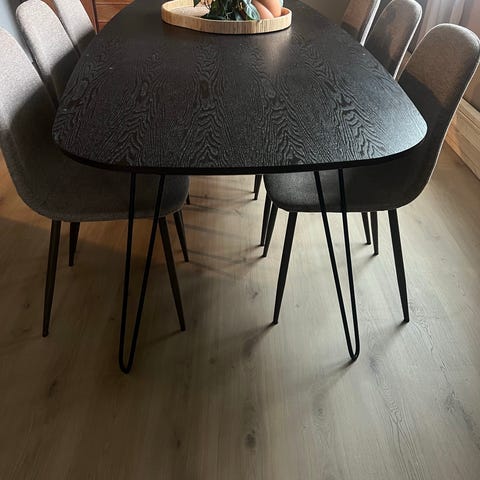 Bordet er i fin stand men stolene har litt malingsflekker.