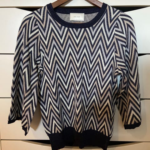 Det er dessverre vanskelig å få frem glansen i sølvtrådene på bildet. Hele toppen har innvevde sølvtråder som gir et utrolig vakkert spill.