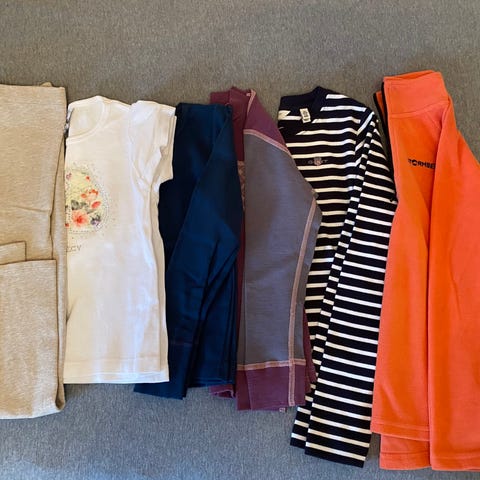 «SFO-pakke» fra Sportmann/Redhill for jente i størrelse 122. Farge: Cerise/marine. Settet inkluderer parkdress med vannsøyle 4000, regnsett (PU) og fleecesett.