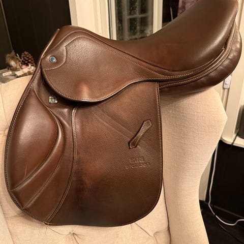 Helt nytt og lekkert Clermont anatomisk hodelag med lakk nese- og pannereim. Hodelaget er også rundsydd. Nypris kr 1000,-. Har også matchende tøyler og andre pannereimer.