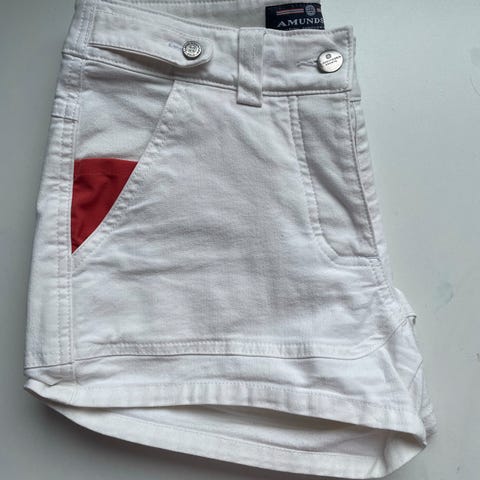Amundsen shorts i semsket skinn, flerfarget, størrelse L for dame. Shortsen har lommer foran og snøring i midjen.