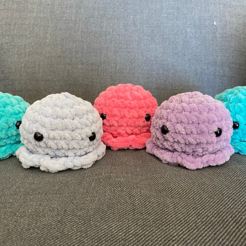 Hjemmelaget soppfigur heklet i 100 % bomullsgarn.