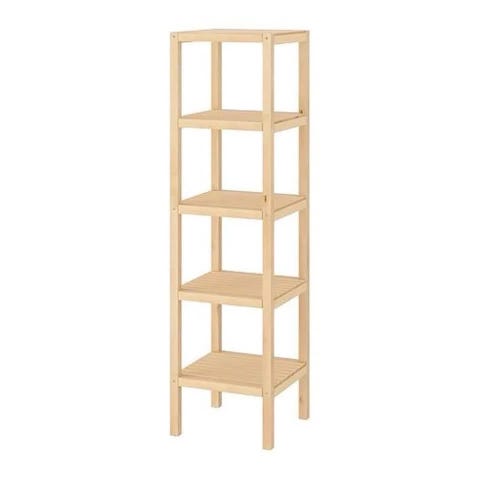Tretoalettpapirholder laget av bambus. Designet for å holde flere ruller toalettpapir på en plassbesparende måte. Passer til bruk i baderom. Fra IKEA