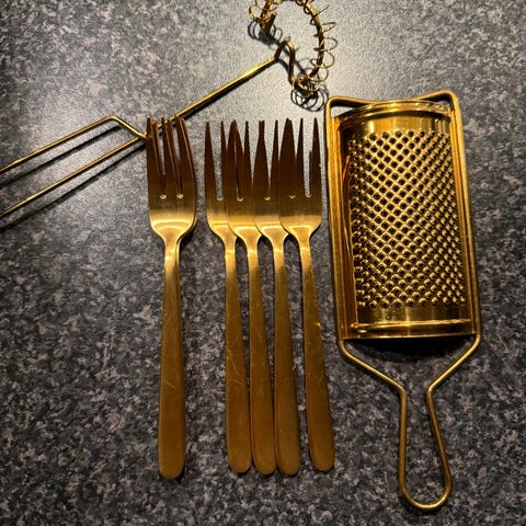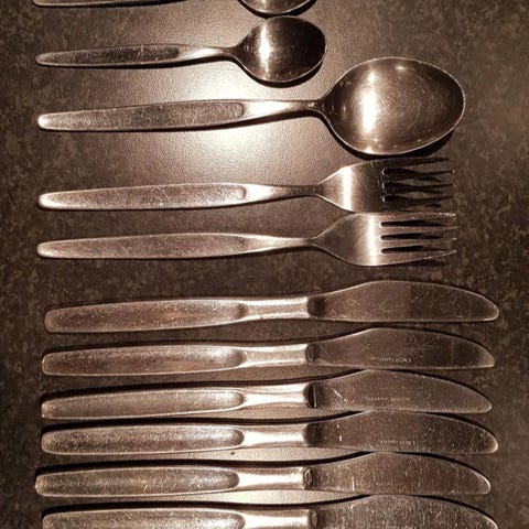 Flott, ubrukt oppskjærssett, Stek-kniv og Stek - gaffel, rustfritt stål med naglet tre-håndtak, Polywood fra Madeira, "LINHA GOURMET" Tramontina Inox Stainless.