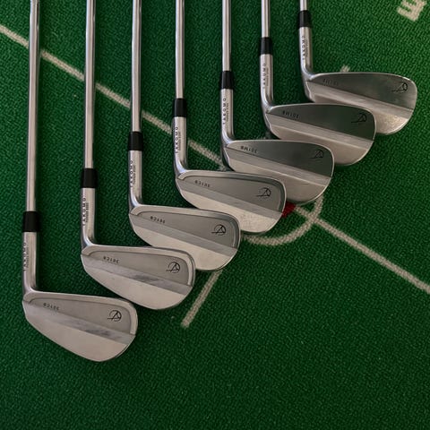 Selger et Takomo jernsett bestående av 4–9 jern med KBS Tour Lite Regular-flex skaft.