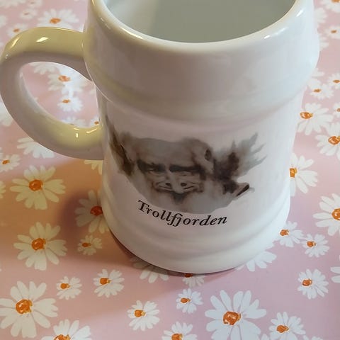 Selger håndlaget Hurtigruten glass med M/S Richard With logo