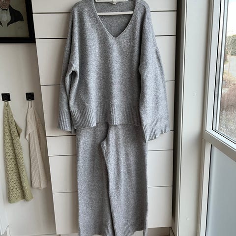 Har et kjempe behagelig og søtt strikka sett fra Kay/Day til KappAhl liggende, da det ikke lengre passer.