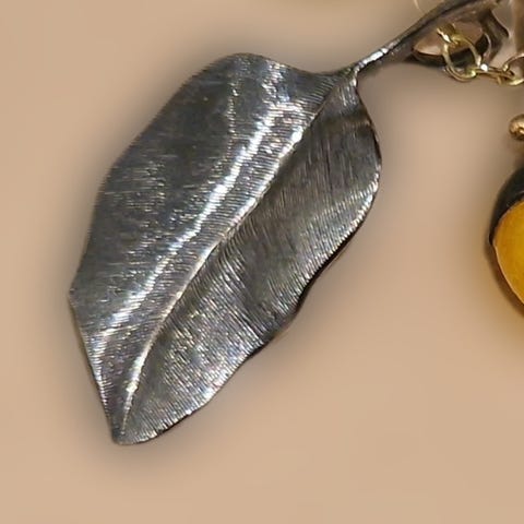 Sølv anheng med sort silkesnor, designet for bruk