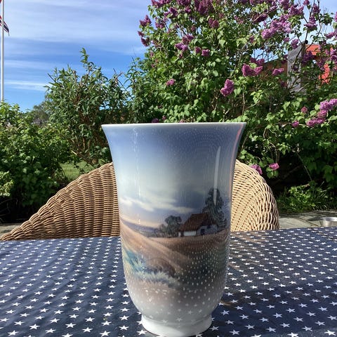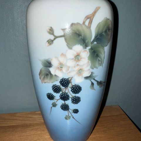 Royal Copenhagen vase med dekorative blå blomster. Laget i porselen med håndmalt mønster. Passer til dekorasjon i hjemmet. 20 cm høy