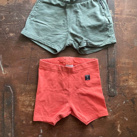 Søt T-skjorte med knapper i halsen for enkel påkledning. Shortsen har strikk i linningen så den kan strammes. Nyvasket og klart til bruk!