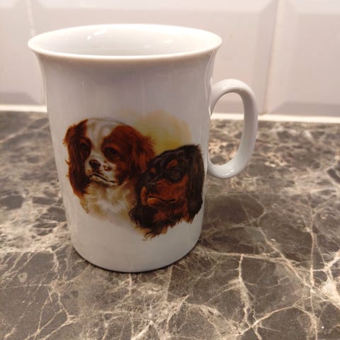 To skjønne kopper porselenskopper med cavalier king Charles spaniel hund på 🐶🤍