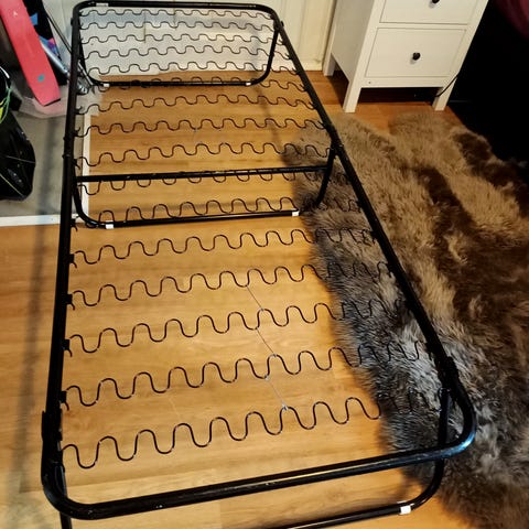 Sengeramme og madrass fra Skeidar med rutete mønster i blått og hvitt. Produktet består av en solid sengeramme med tilhørende madrass, designet for komfort og støtte. Trekket på overmadrassen er avtagbart og kan vaskes. Passer til standard dobbeltsengstørrelse. 180x200 cm.