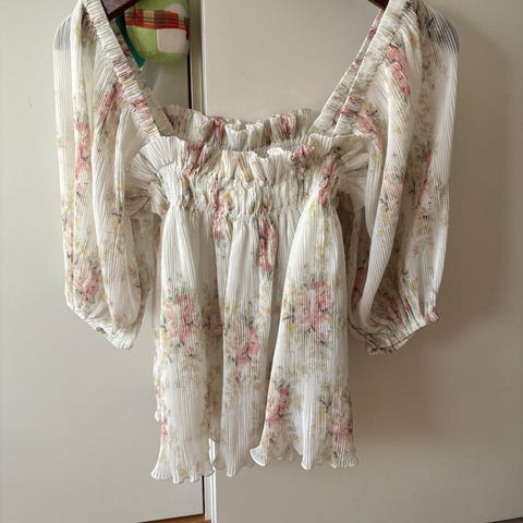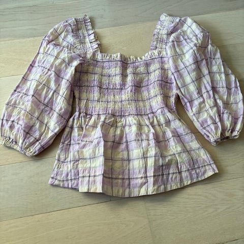 Ganni Andre topper i størrelse 40. Toppen har et flerfarget mønster og er laget av viskose.
