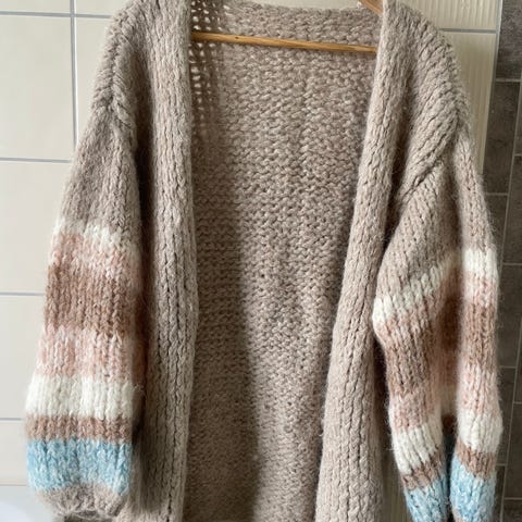 En vakker cardigan i deilig Lieve Mondial garn som er fin til jeans, kjole og skjørt, til sommerkvelder eller vinterdager. Den er mye brukt, men har mye god bruk igjen. Alltid mye skryt av denne.