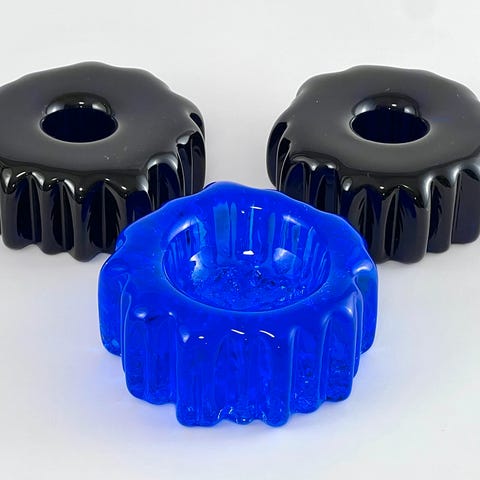 Hadeland lysestake. Ornamentet har et mønster som minner om iskrystaller og er designet for dekorativ bruk.