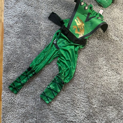 Batmankostyme med belte og maske i størrelse 104. Masken skulle opprinnelig ha en kappe, men den er klippet av, og følger ikke med.