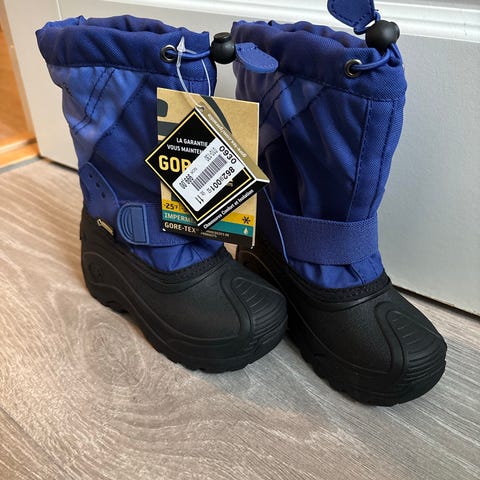 Nye Kamik sorel støvler str 10. Kun prøvd på. Står at de tilsvarer str 27, men er litt små i størrelsen. Ble for trange til han som bruker 27 i andre sko her. Så mer 26-27.