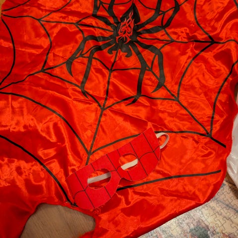 Spidermandrakt i pusestoff selges.