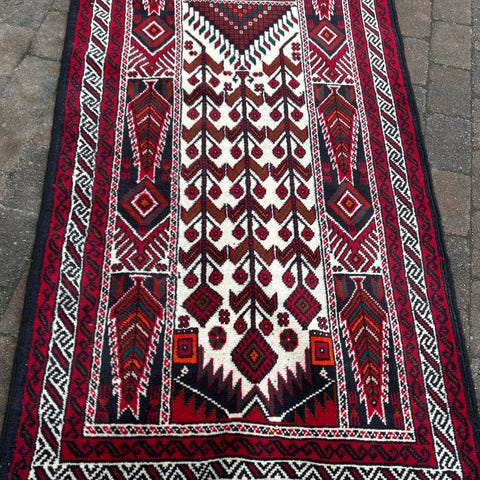 Teppet er håndknyttet og 100% Ull. Svært lite brukt og ingen form for slitasje. I sin tid kjøpt for kr 4000,-