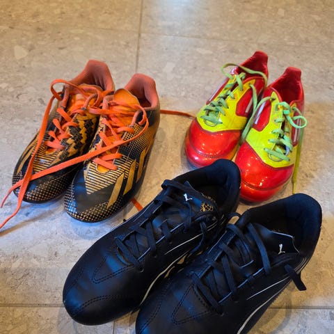Tre par innesko. Hvit Adidas str34, svart Adidas str35, rød Puma str 35.